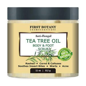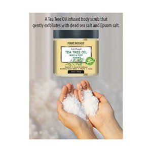 100% Natural Tea Tree Oil Body & Foot Scrub with Dead Sea Salt – Best for Acne, Dandruff and Warts, Helps with Corns, Calluses, Athlete foot, Jock Itch & Body Odor (11 oz)